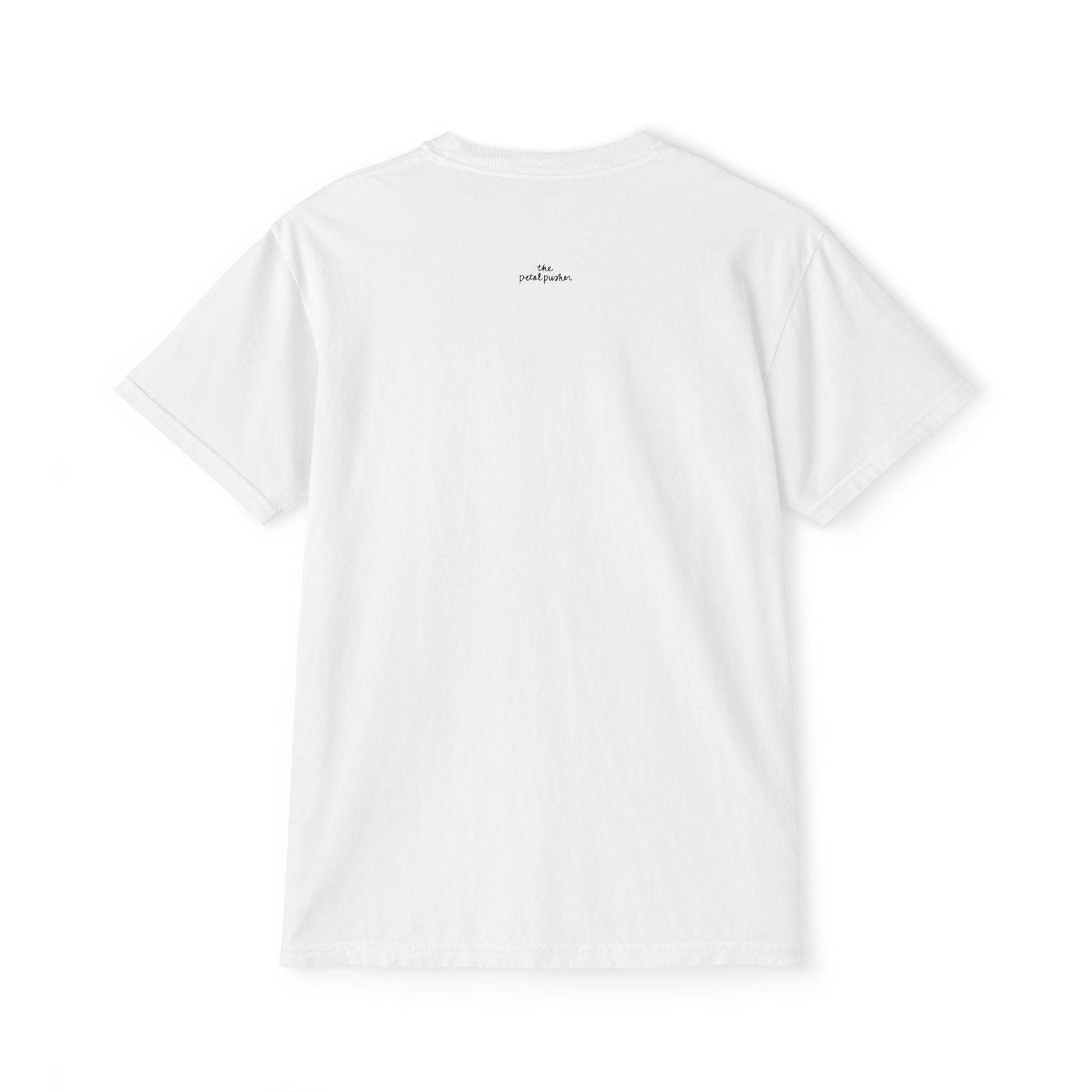 Whales for me and for you! Upgrade your wardrobe with our classic pocket tee shirt, featuring original linocut artwork by Paige Luethy.