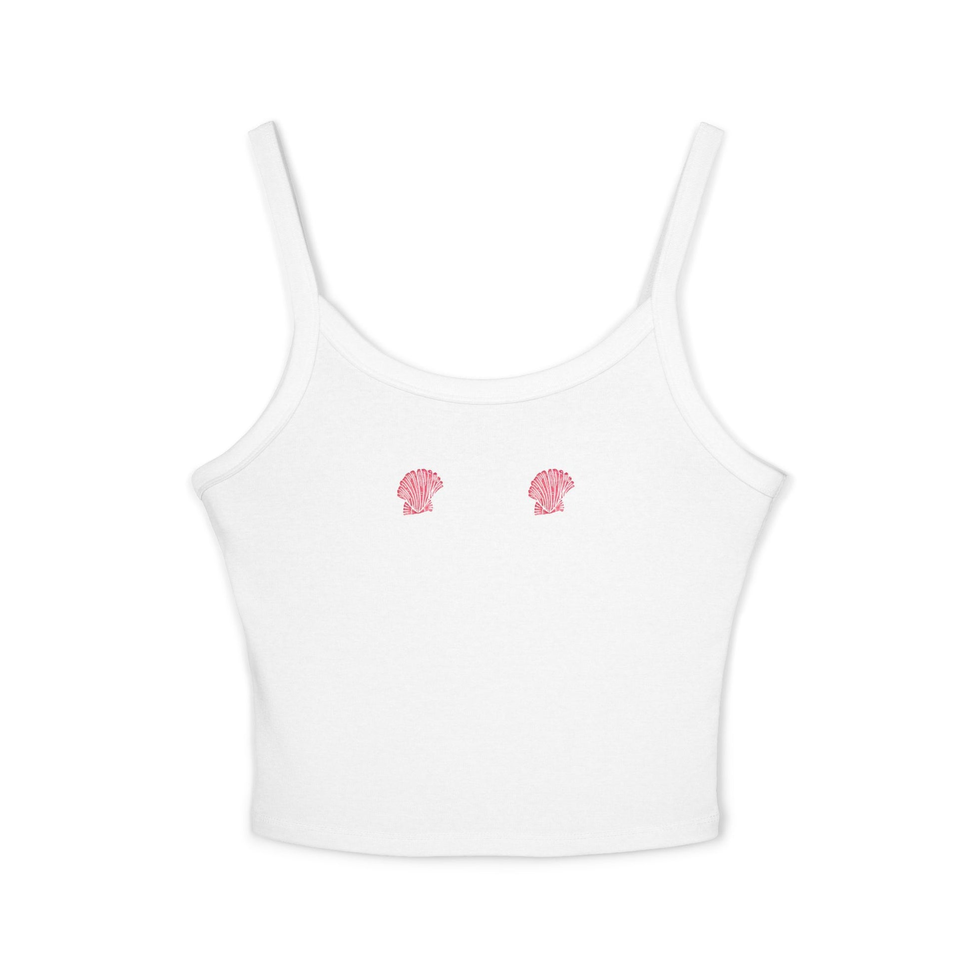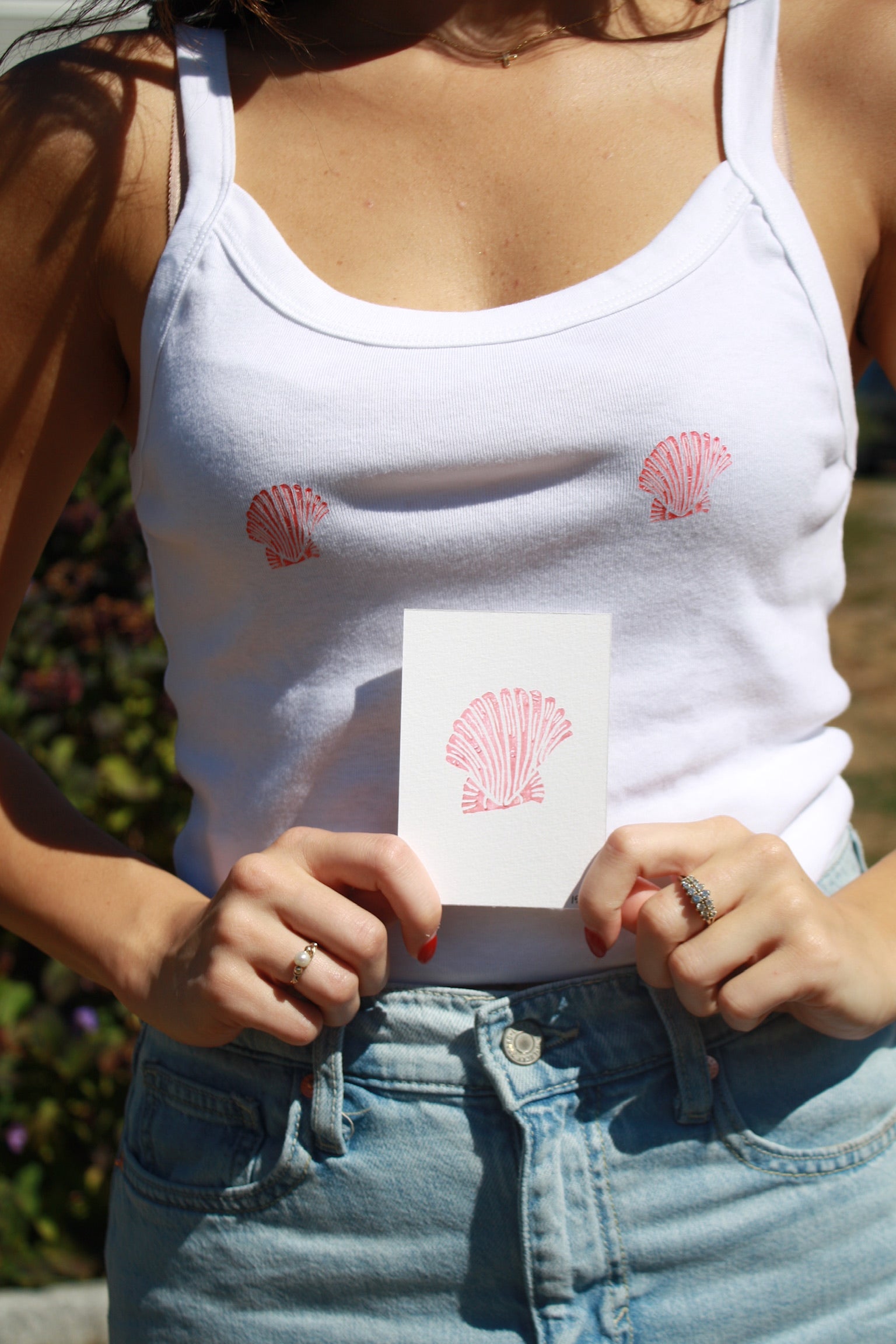 Celebrate the heritage of Stonington and the joy of our original artwork vending machine with The Petal Pusher x the Lighthouse Museum collection! Upgrade your beach fits with our 90's-inspired thick spaghetti strap tank top, featuring original linocut and watercolor artwork by Colette Brown and Paige Luethy.